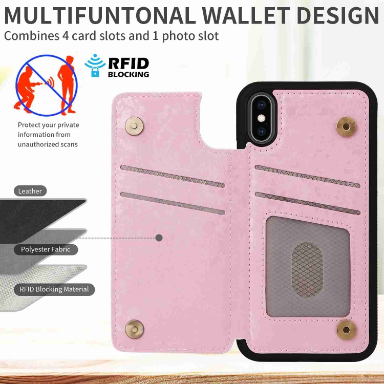 Funda para Teléfono iPhone Xs Max Antirrobo Rfid con Doble Hebilla (Rosa Pastoral)