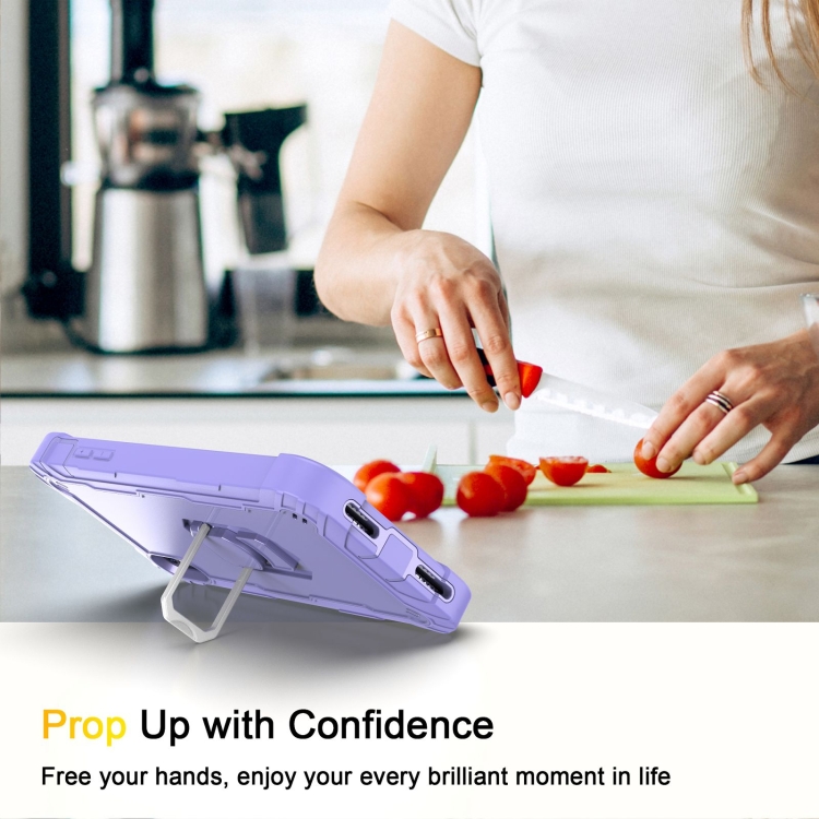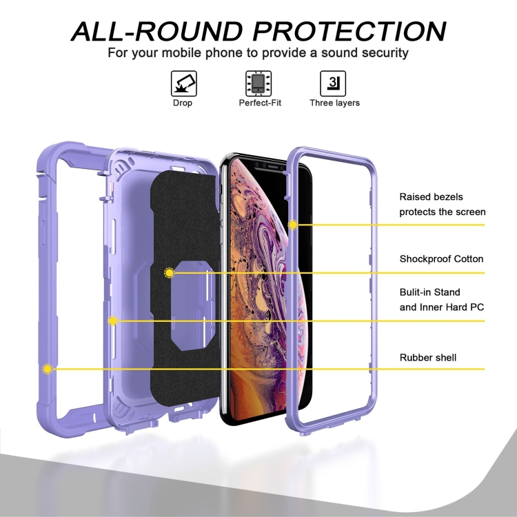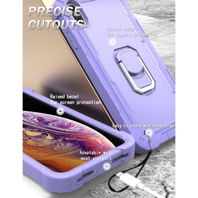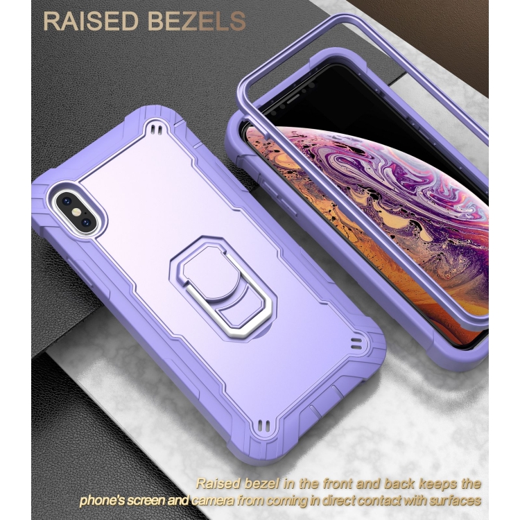 Funda para iPhone Xs Max PC y Goma 3 Capas a Prueba de Golpes con Soporte Giratorio (Púrpura)