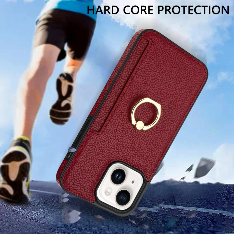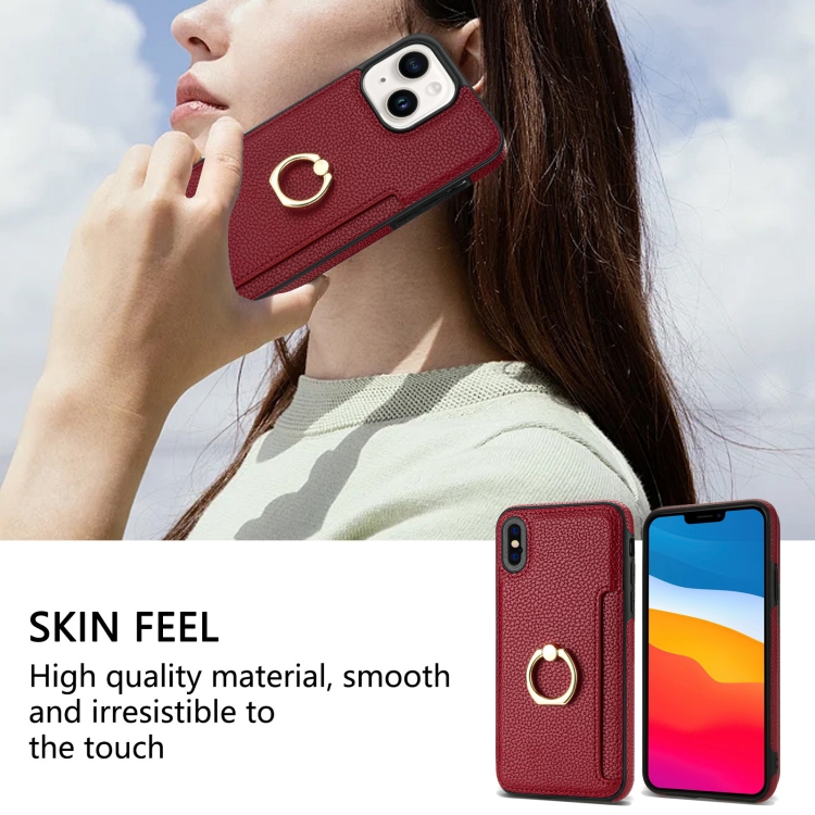 Funda Trasera para iPhone Xs Max Ring Card Litchi Cuero (Rojo)