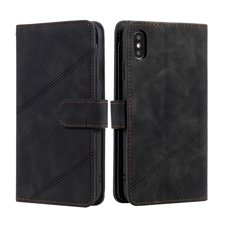 Estuche para iPhone Xs Max Skin Feel Business Cuero de PU Tapa Horizontal Soporte Ranuras Tarjetas Billetera Cordón Marco Fotos (Negro)
