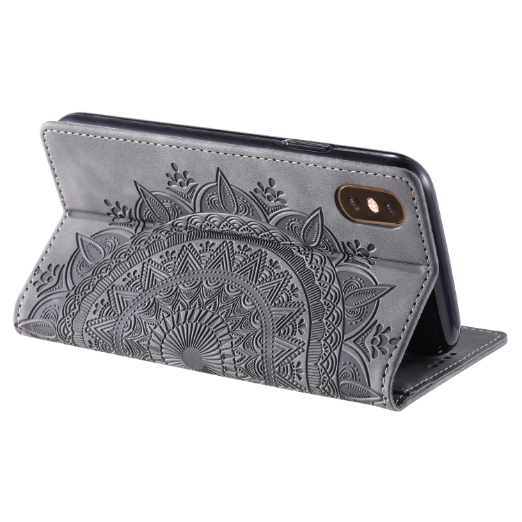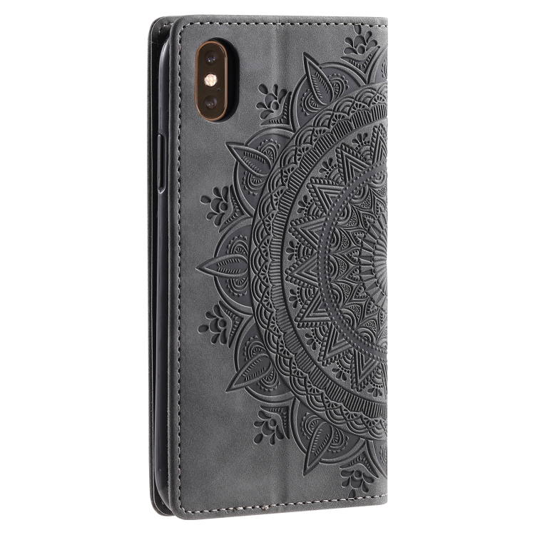 Funda de Cuero Magnética Totem para iPhone Xs Max en Relieve (Gris)