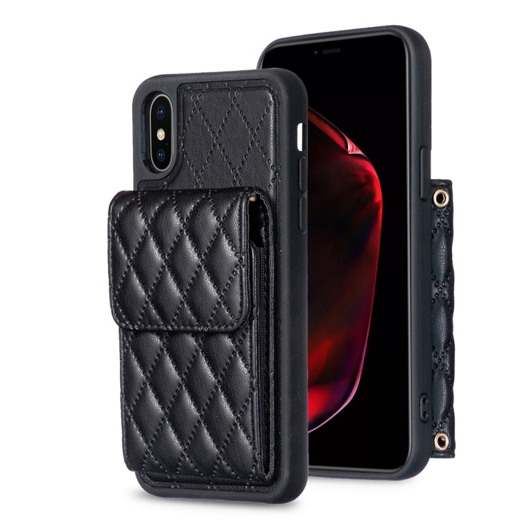 Funda para iPhone Xs Max Vertical Wallet Rhombic Leather Phone Case (Negro)