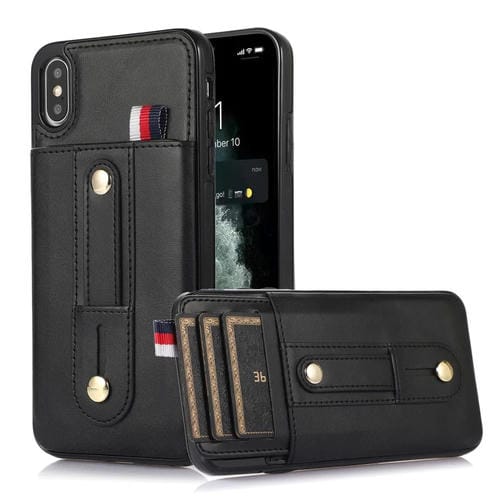 Funda para iPhone Xs Max Wristband Kickstand Wallet Leather Phone Case (Negro)