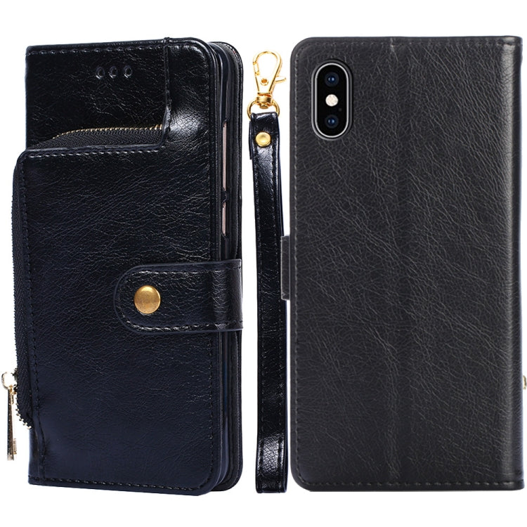 Funda para iPhone Xs Max PU + TPU Cuero con Tapa Horizontal Soporte Ranura Tarjeta Billetera Cordón (Negro)