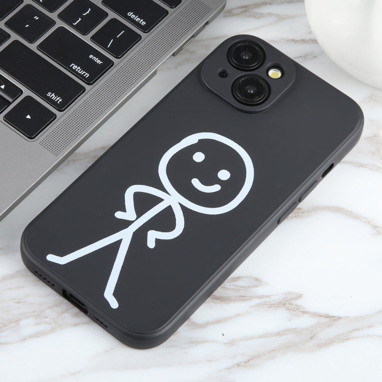 Estuche para Teléfono iPhone Xs X Silicona Líquida Patrón Stickman (Negro)