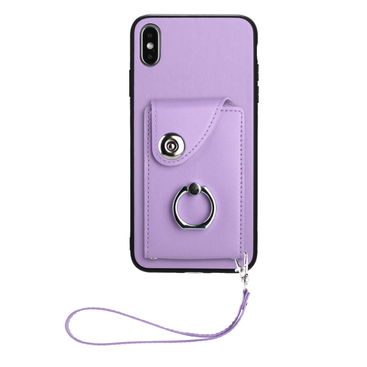Funda para Teléfono iPhone Xs / X de PU con Soporte para Anillo y Bolsa para Tarjeta con Cordón (Púrpura)