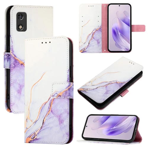 Funda para Itel A23 Pro / A17 Pt003 de Cuero con Tapa y Patrón Mármol (Blanco y Morado)