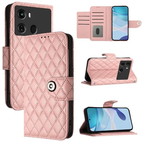 Funda para Itel P40 de Cuero con Tapa Textura Rómbica y Cordón (Rosa Coral)