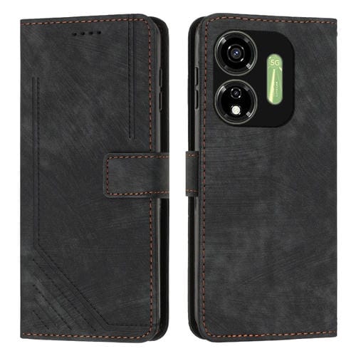 Funda de Cuero para Itel P55 5G con Patrón de Rayas y Cordón (Negro)
