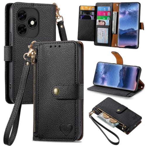 Funda de Cuero para Itel S23 con Love Zipper Lanyard para Teléfono (Negro)