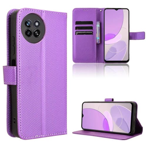 Funda de Cuero para Itel S23 S665L con Textura de Diamante (Púrpura)