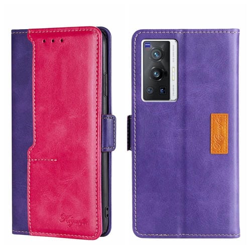 Para la Caja de Teléfono de Cuero de Hebilla Lateral de Color Vivo X70 Pro Contrast (Púrpura + Rosa Rojo)