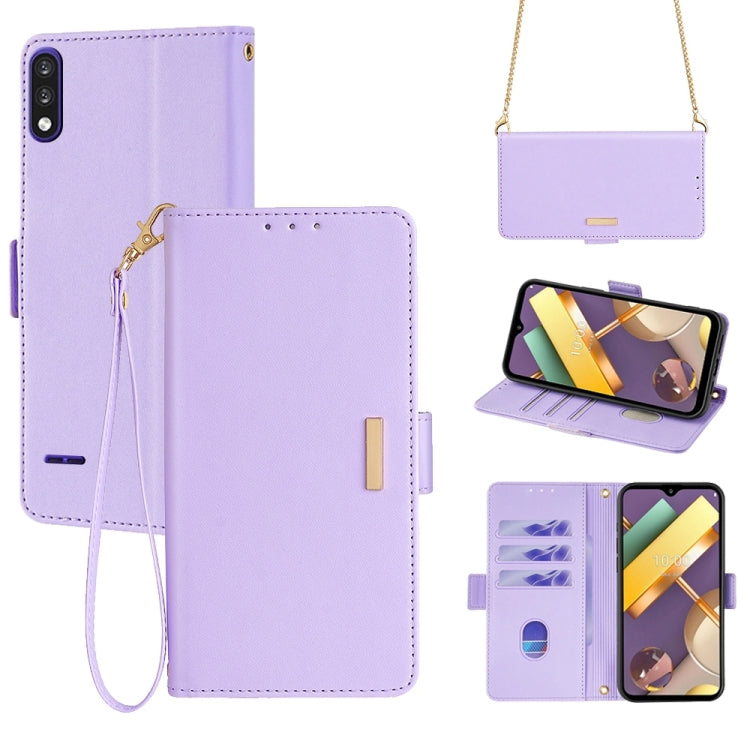 Funda de Cuero para Teléfono LG K22 con Cadena Cruzada (Púrpura)