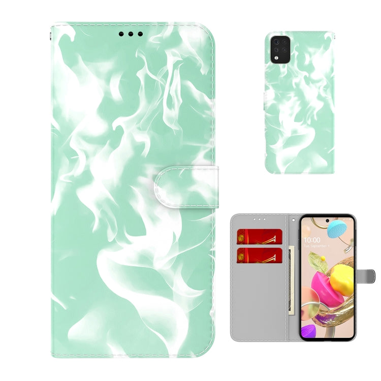 Funda de Cuero para LG K42 Cloud Fog Stattern con Soporte, Ranura para Tarjeta y Billetera (Menta Verde)