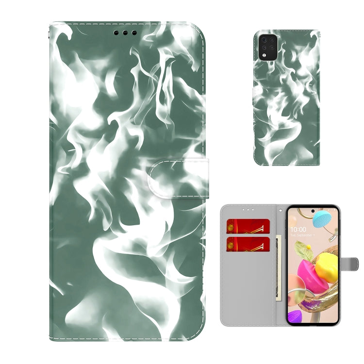 Funda de Cuero LG K42 Nube Nube Pattern Flip Horizontal con Soporte y Ranura para Tarjeta y Billetera (Verde Oscuro)