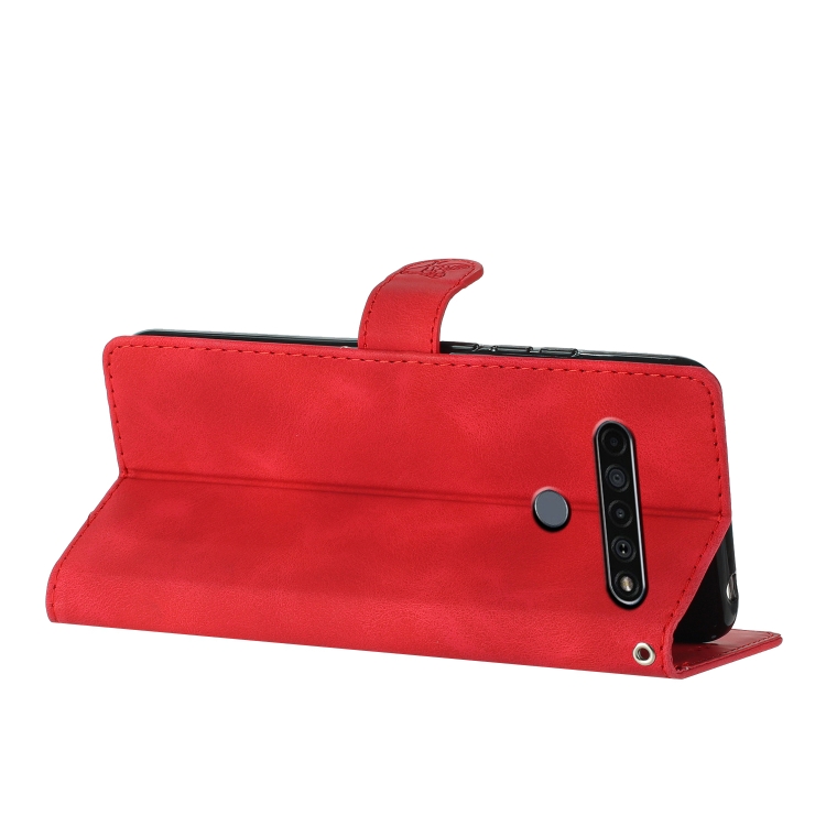 Funda de Cuero para LG K51S con Relieve Flor Mariposa Patrón (Rojo)
