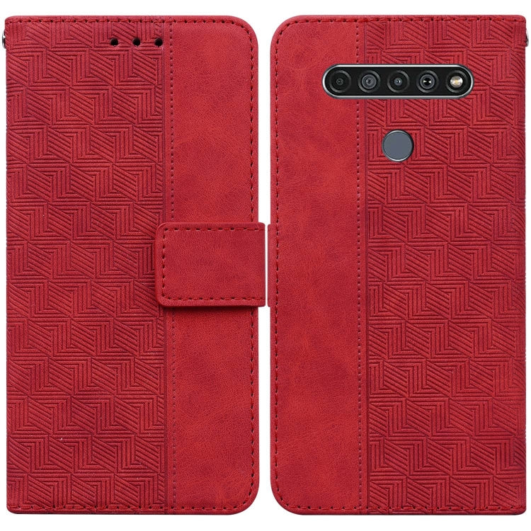 Funda para LG K61 Caja de Cuero En Relieve Geométrico (Rojo)
