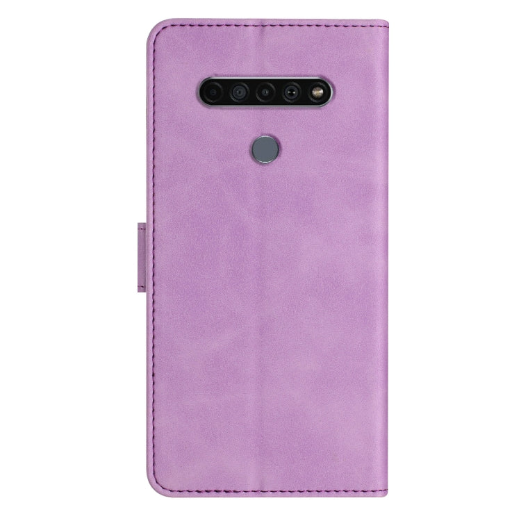 Funda de Cuero para LG K61 Seven Butterflies con Relieve (Púrpura)