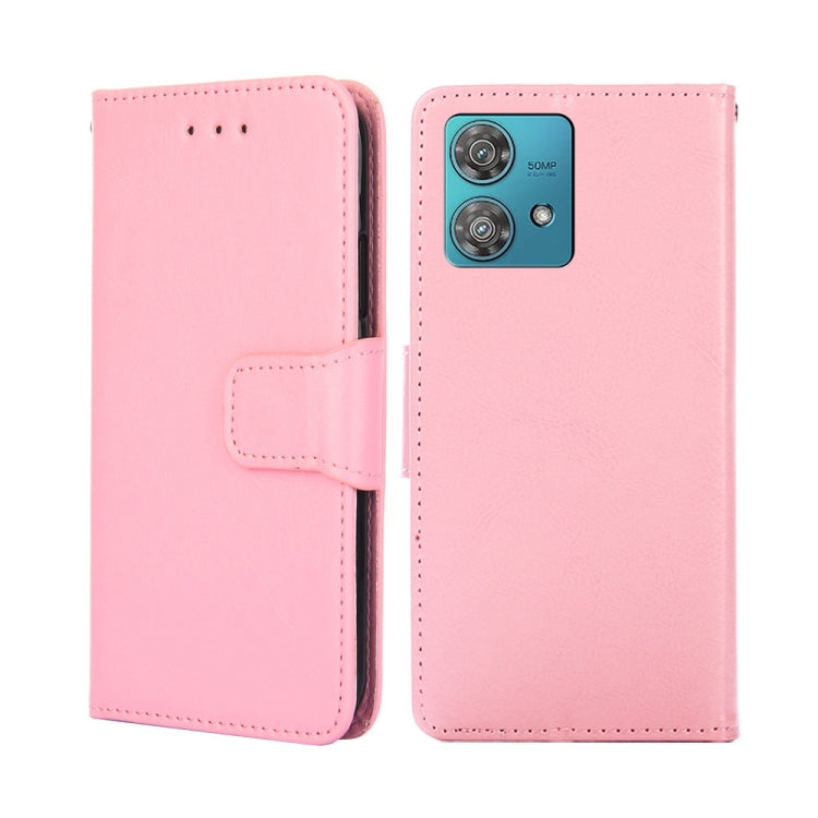 Funda de Cuero para Motorola Edge 40 Neo 5G con Textura de Cristal (Rosa)