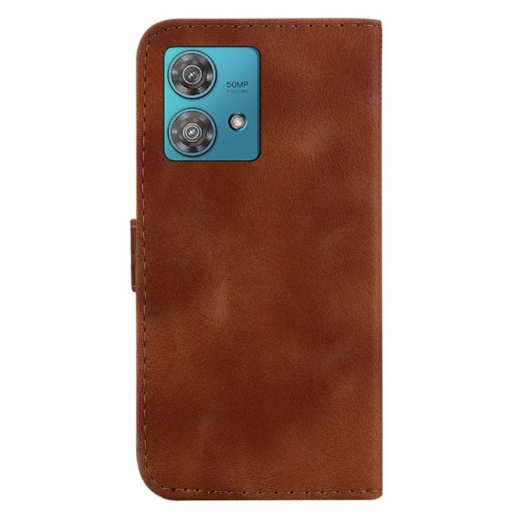 Funda de Cuero para Motorola Edge 40 Neo con Relieve en Forma de 7 (Marrón)