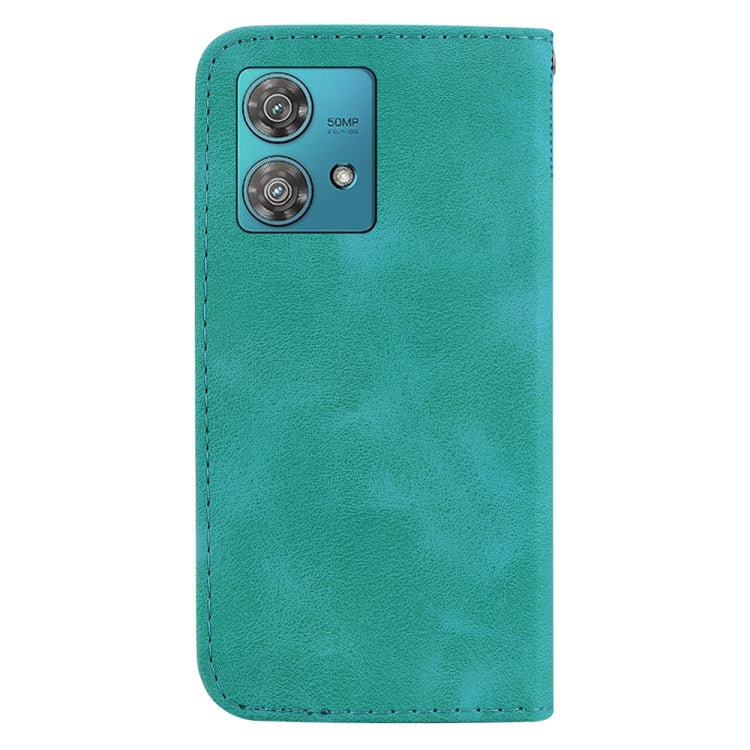 Funda de Cuero para Motorola Edge 40 Neo con Relieve en Forma de 7 (Verde)