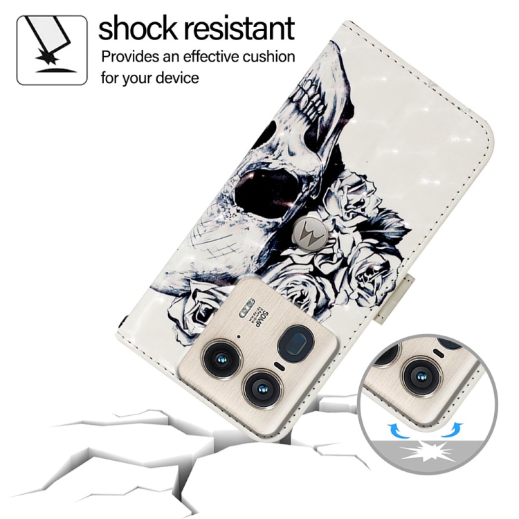 Funda para Motorola Edge 50 Ultra de Cuero con Tapa Horizontal y Pintura 3D (Calavera)