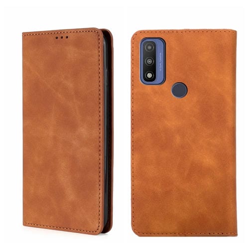 Caja de Teléfono Motorola G Pure Skin Feel Flip Horizontal Magnética (Marrón Claro)