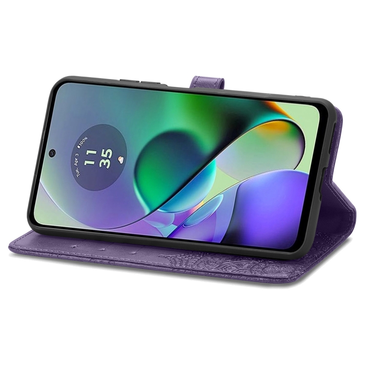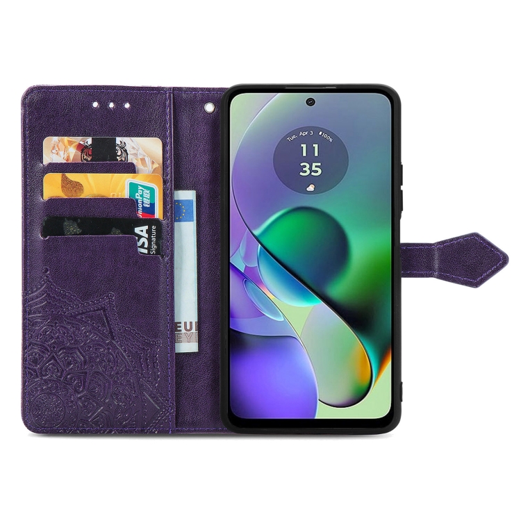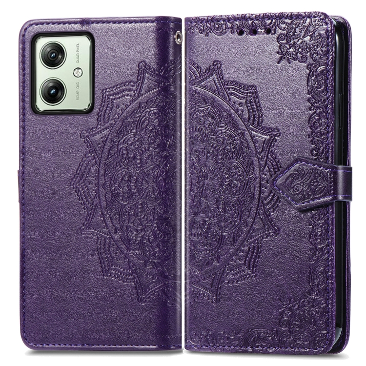 Funda para Motorola G54 5G de Cuero con Relieve de Flor de Mandala (Púrpura)