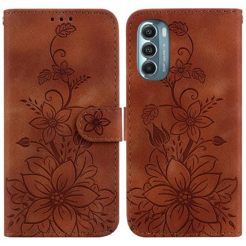 - 1x Funda de Cuero con Relieve Lily para Motorola Moto G Stylus 5G 2022 (Marrón)