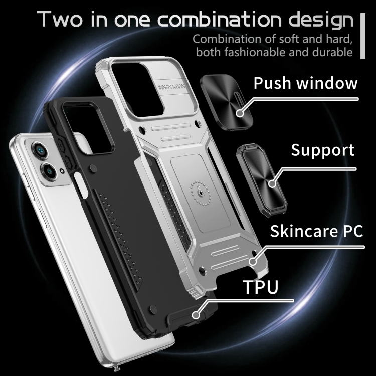 Funda para Motorola Moto G Stylus 5G 2023 Camshield Robot TPU Hybrid PC (Plata)