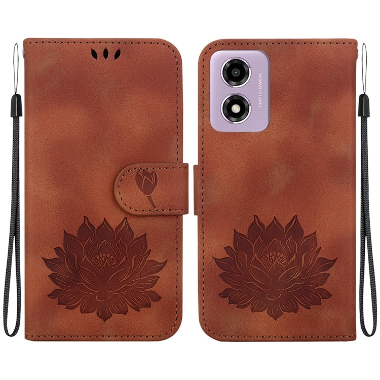 Funda para Motorola Moto G04S y Moto E14 de Cuero con Relieve de Loto (Marrón)