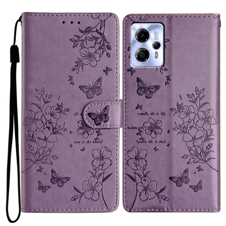 Funda de Cuero para Motorola Moto G13 y G23 con Mariposas y Flores (Púrpura)