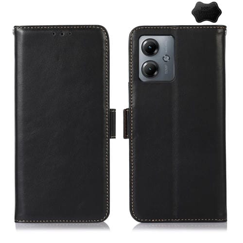 - 1x Funda Magnética Motorola Moto G14 4G con RFID Cuero Genuino Textura Caballo Loco (Negro)