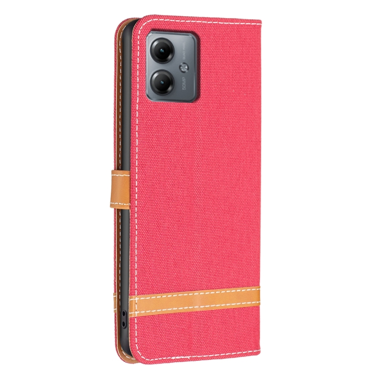 Funda para Motorola Moto G14 4G de Cuero con Textura Vaquera y Bloques de Color (Rojo)