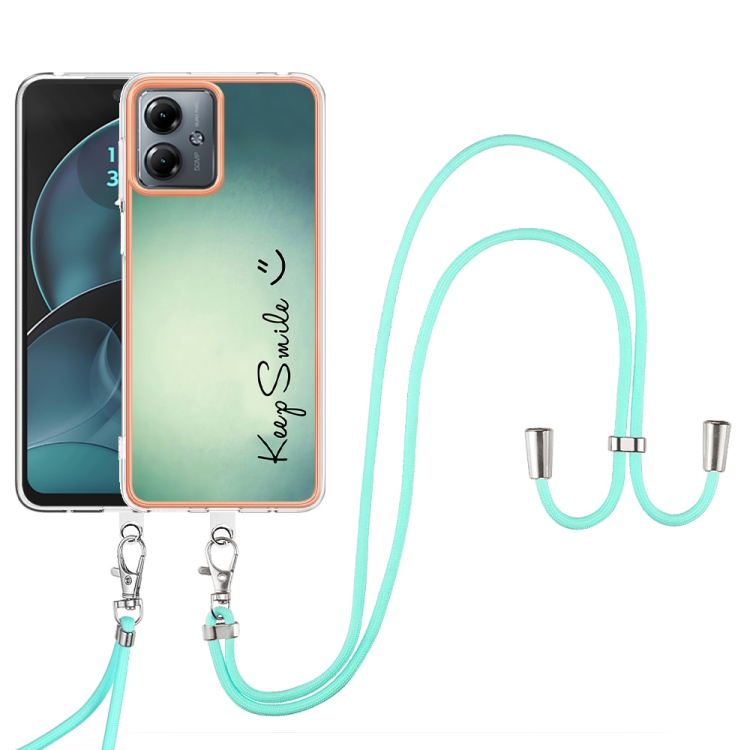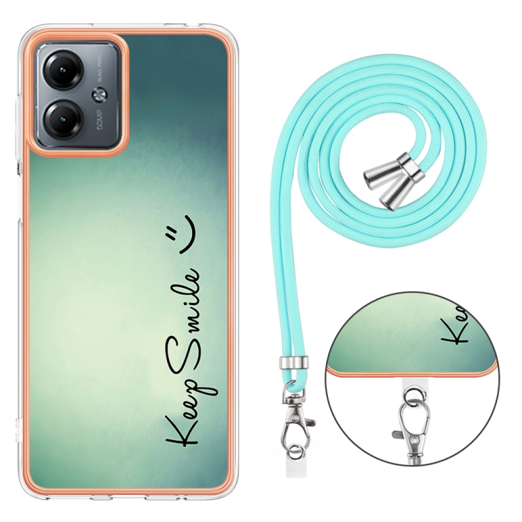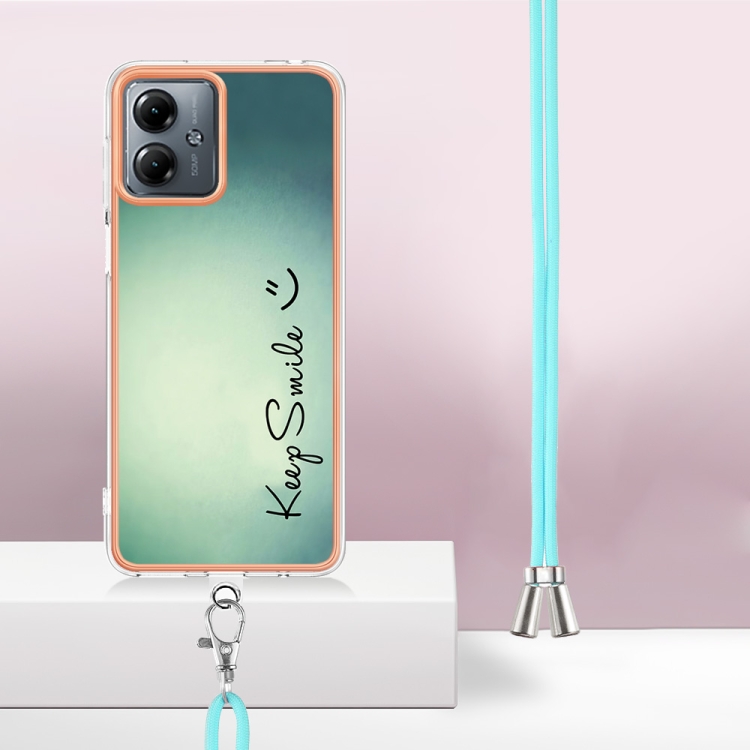 Estuche para Motorola Moto G14 Imd Doble Cara con Galvanoplastia y Cordón (Sonrisa)