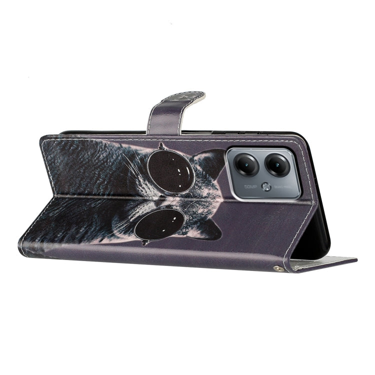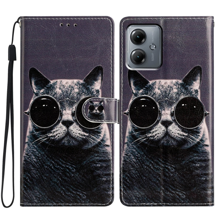 Funda de Cuero para Motorola Moto G14 con Dibujo Coloreado Gato de Gafas de Sol