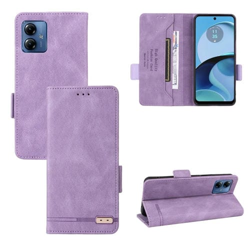 Funda de Cuero para Motorola Moto G14 con Cierre Magnético (Púrpura)