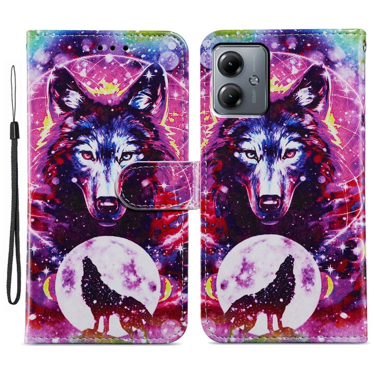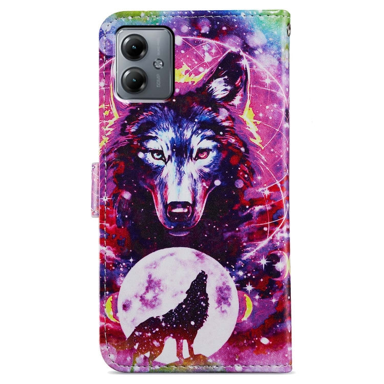 Funda de Cuero para Motorola Moto G14 con Tapa Horizontal y Patrón Pintado (Tótem de Lobo)