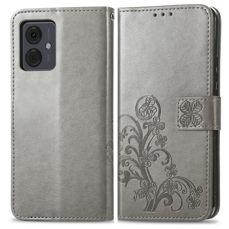 Funda de Cuero Repujado para Motorola Moto G14 con Cierre de Cuatro Hojas (Gris)