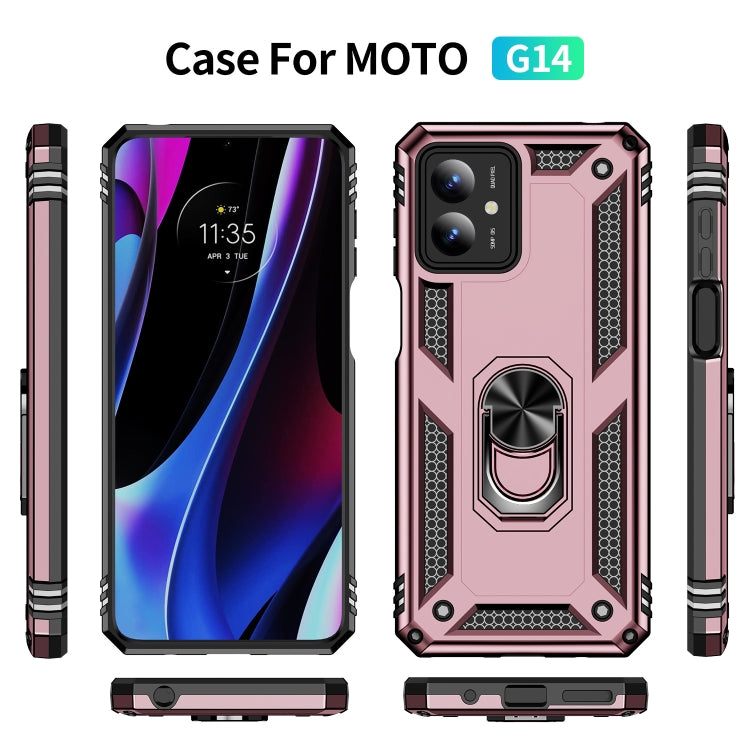 Funda para Motorola Moto G14 TPU + PC a Prueba de Golpes con Soporte (Oro Rosa)