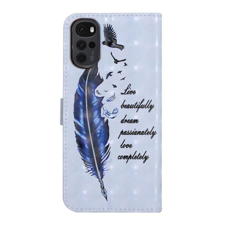 Funda de Cuero para Motorola Moto G22 con Dibujo 3D en Relieve al Óleo (Pluma Azul)