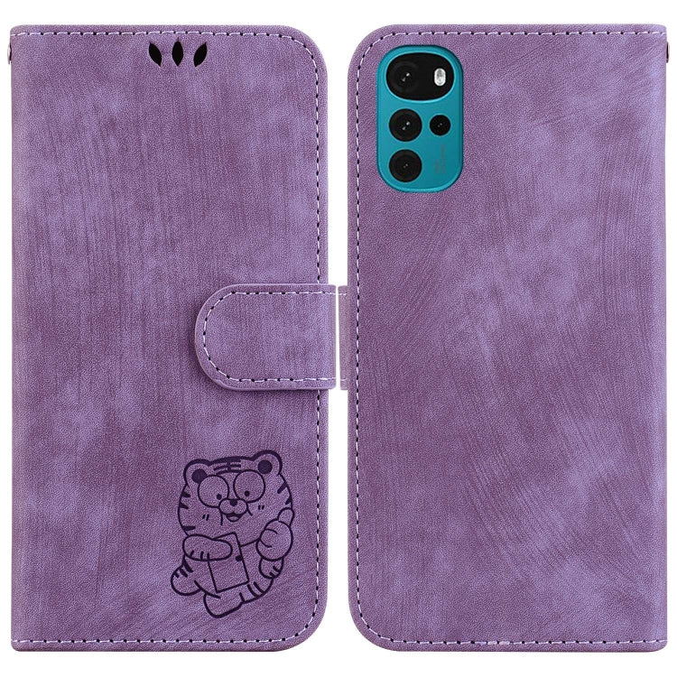 Funda de Cuero para Motorola Moto G22 Little Tiger en Relieve (Púrpura)