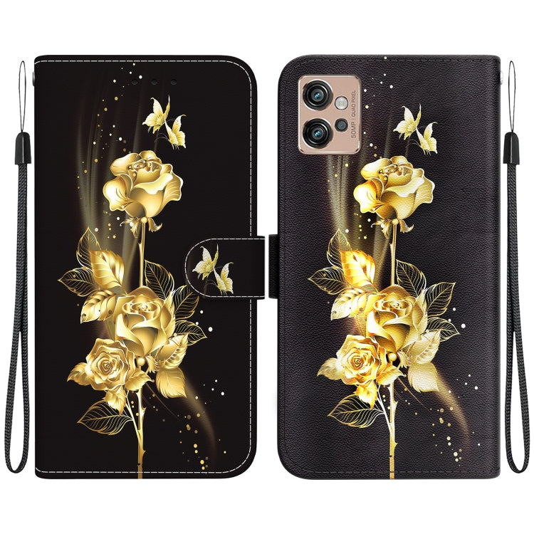 Funda de Cuero para Motorola Moto G32 con Dibujo Coloreado y Textura de Cristal (Mariposa Dorada Rosa)
