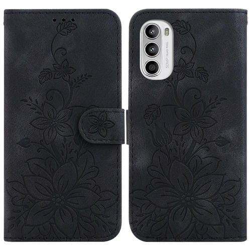 - 1x Funda de Teléfono Motorola Moto G52J Versión JP Cuero con Relieve Lily (Negro)