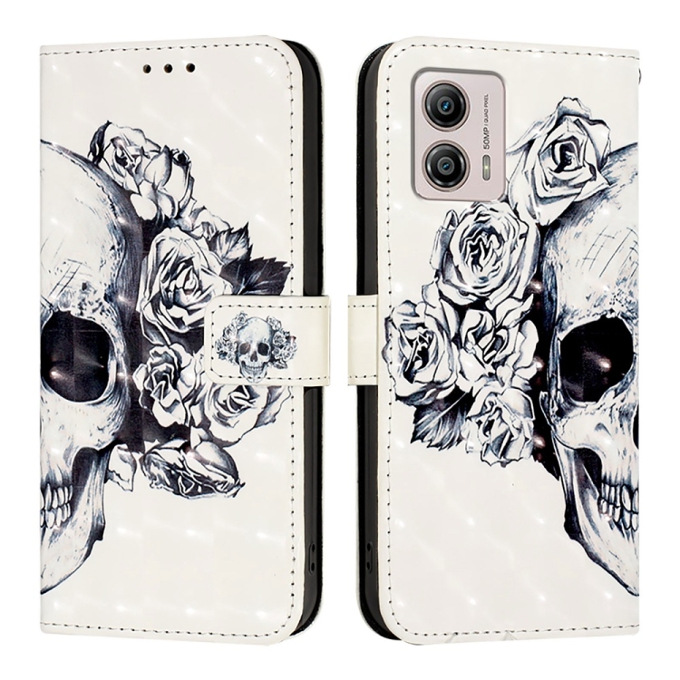 Funda para Motorola Moto G53 5G y Moto G13 de Cuero con Tapa Horizontal y Pintura 3D (Calavera)