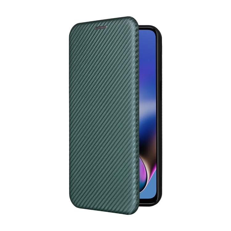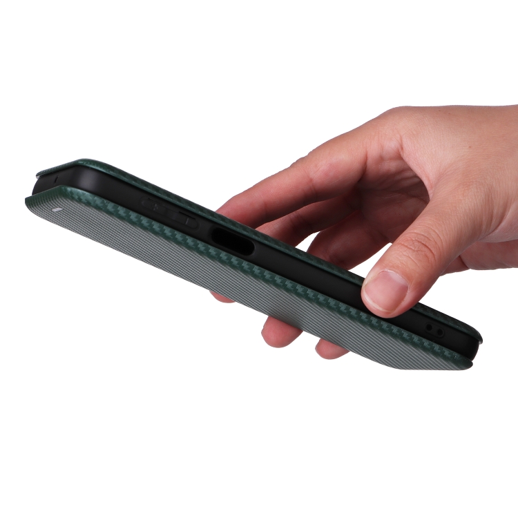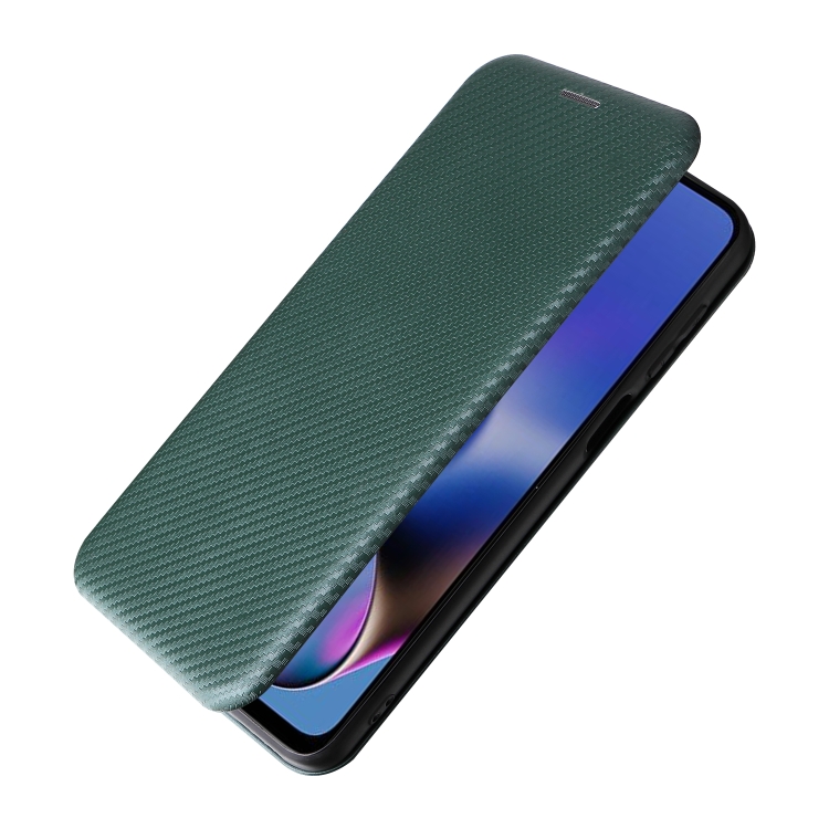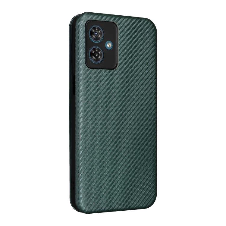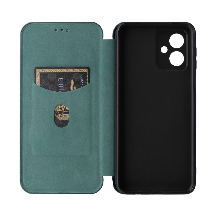 Funda de Cuero para Motorola Moto G54 5G con Tapa y Textura de Fibra de Carbono (Verde)