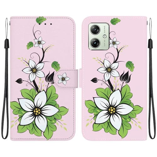 - 1x Funda de Cuero para Motorola Moto G54 con Dibujo Coloreado y Textura de Cristal (Lirio)