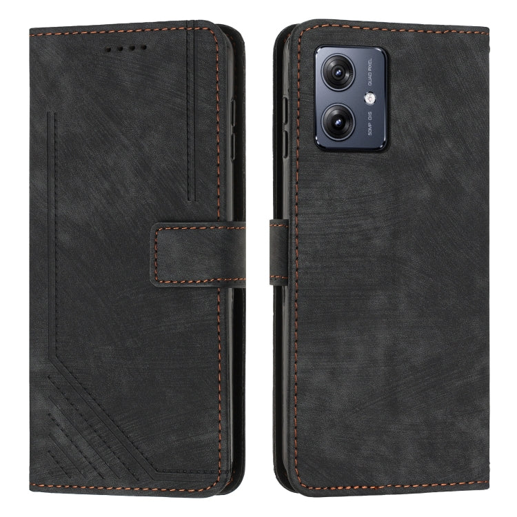Funda de Cuero para Motorola Moto G54 Skin Feel con Patrón de Rayas y Cordón (Negro)