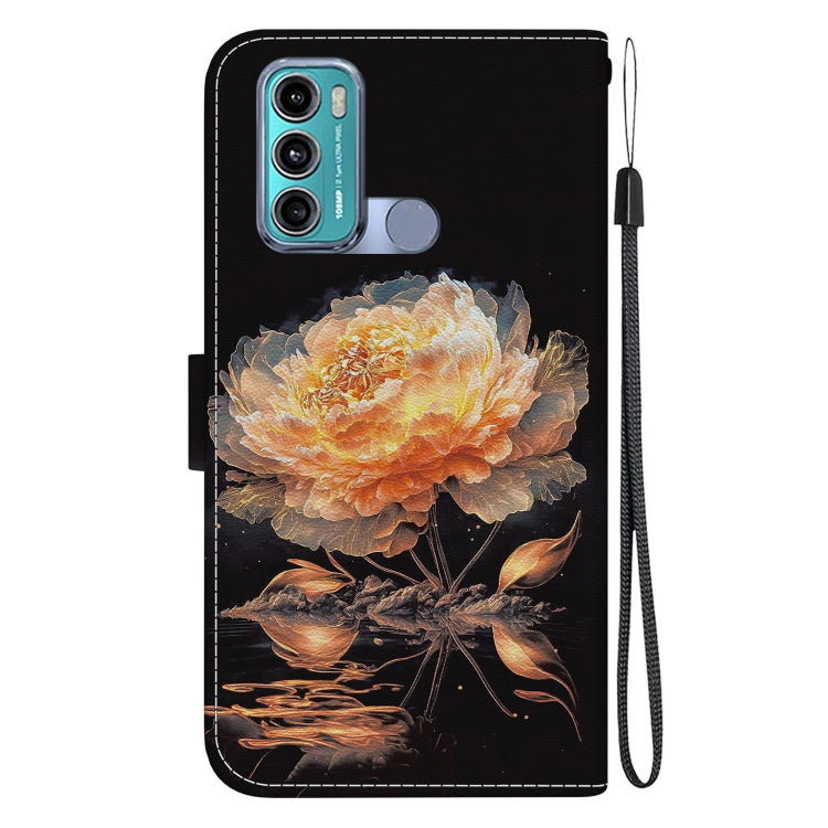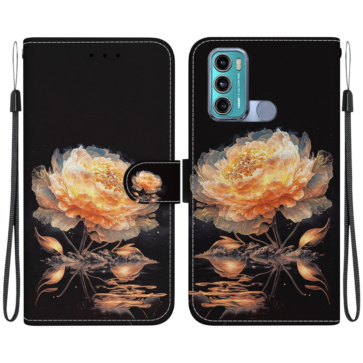 Funda de Cuero para Motorola Moto G60 / G40 Fusion con Dibujo Coloreado (Peonía Dorada)