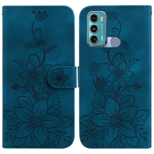 Funda para Motorola Moto G60 y G40 Fusion Lily de Cuero en Relieve (Azul Oscuro)
